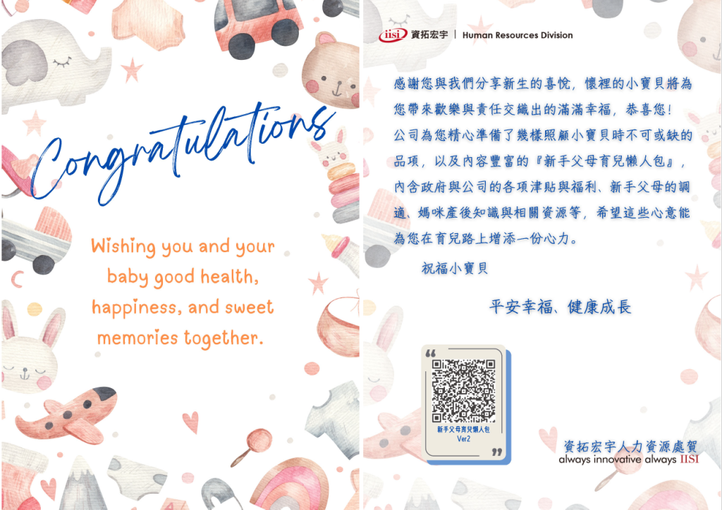 依據職業安全衛生法相關條例,訂定母性健康保護計畫為基礎,更進一步提供懷孕員工資源整合包、產後員工提供內容豐富的育兒禮包。