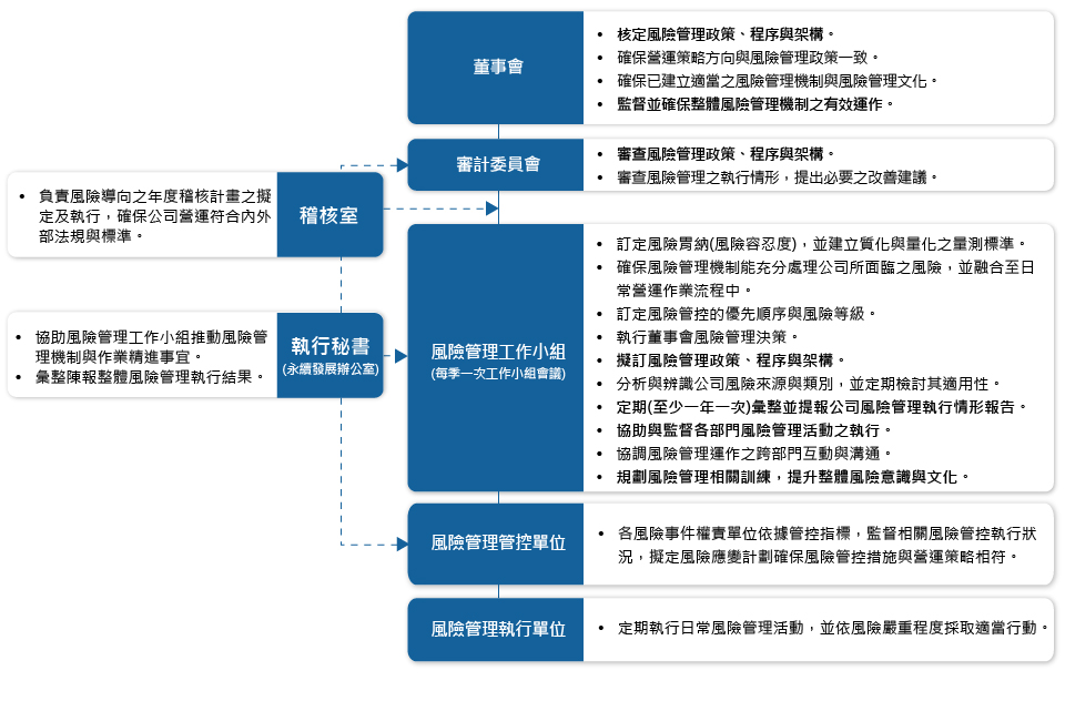 | 組織面 | 於2024年設置【風險管理工作小組】協助與監督風險管理活動之執行,落實風險管理運作。 |