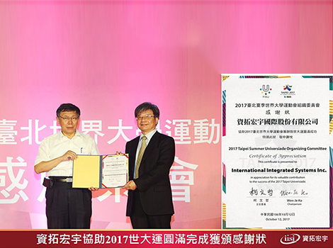 資拓宏宇協助2017世大運圓滿完成獲頒感謝狀