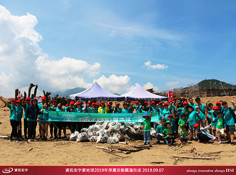 資拓宏宇公司今年(2019) 邀集近80位同仁及眷屬於9月7日(六)上午,一同前往新北市金山區中角灣進行淨灘,秉持著對環境保護的愛與熱情,即便當日烈陽高照,資拓宏宇的員眷協力撿拾了共230公斤重的塑膠、保麗龍等海漂垃圾。
