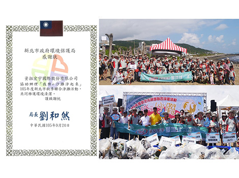 資拓宏宇投入105年度新北市秋季聯合淨灘活動 獲頒感謝狀