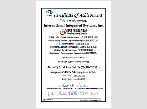 資拓宏宇於今年2012年 6月29日正式通過CMMI第3級認證評鑑,證明在軟體工程和品質基礎上,得以提供客戶更高層次的服務水準。